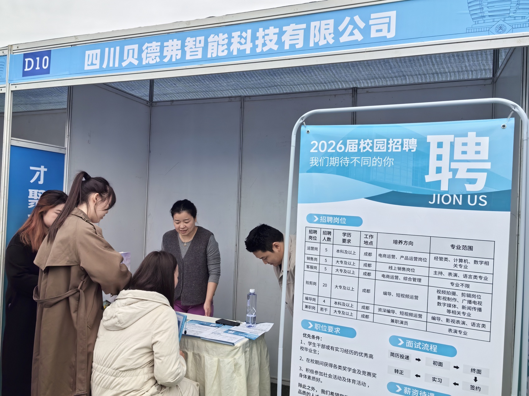 四川贝德弗智能科技有限公司从事智能家居设备的设计和生产,是首次来到内江师范学院开展招聘活动。“我们公司将重点拓展电商板块,包括直播带货,所以主要想招聘会拍视频、会剪辑、会创意的人才。今天刚来不久,就有很多学生来咨询,也收到了不少简历。后续会看他们的短视频作品,重点考察实际操作能力。”该公司现场招聘负责人徐茂然表示。