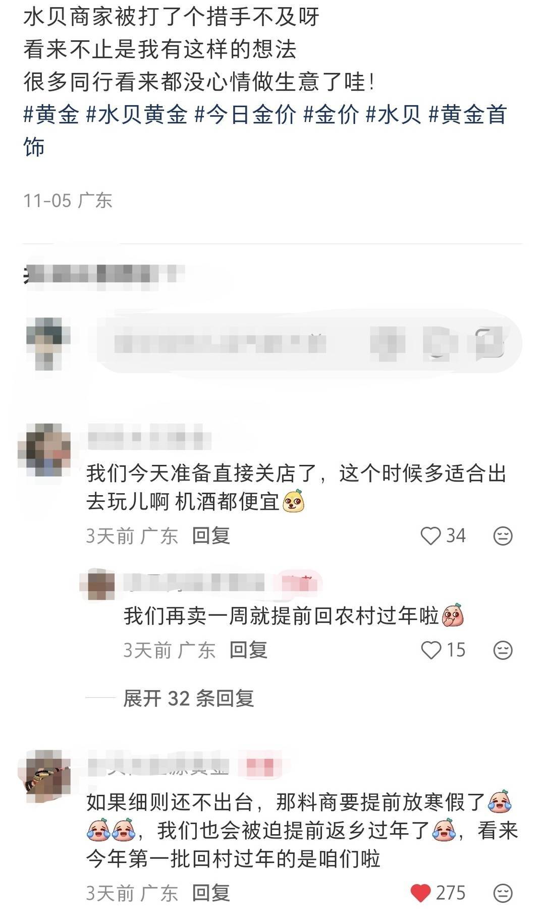 有网友留言:“以前觉得黄金是硬通货,没想到政策变动影响这么大”,也有网友表示理解:“成本涨了生意难做,暂时离场也是明智之举”。