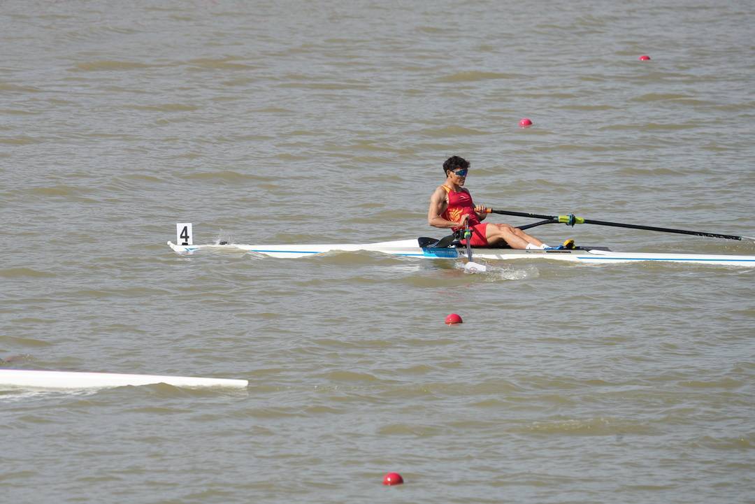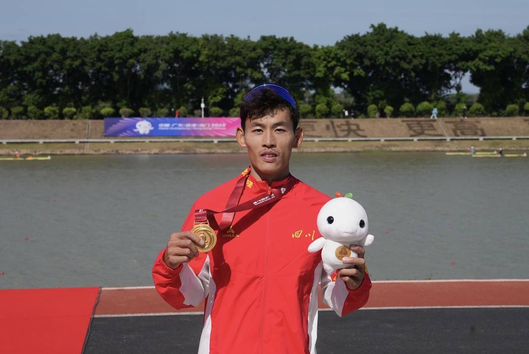 11月10日,全国第十五届全运会迎来开幕式后的首个比赛日,上午在广州国际划船中心进行的赛艇比赛中,四川选手谷建滔获得男子轻量级担任双桨冠军。