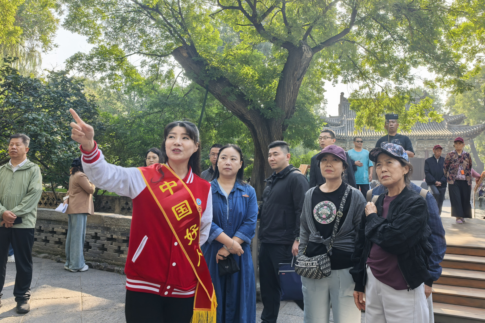 “我们山西被誉为‘中国戏曲的摇篮’,我们面前的水镜台,就是古代唱戏的戏台。这座古建筑建于明代,清道光二十四年(1844)重修。它集楼、台、殿、阁四种建筑风格于一体,造型灵巧,雕刻精细,彩绘艳丽。”在晋祠博物馆水镜台前,“中国好人”李笑冰,从“文明摇篮”“夏商踪迹”“晋国霸业”到“佛风遗韵”“戏曲故乡”……她兴致盎然地为游客们讲解三晋泱泱五千年的恢弘历史和灿烂文化,也讲述着数智技术如何改变我们与文物的相遇方式。