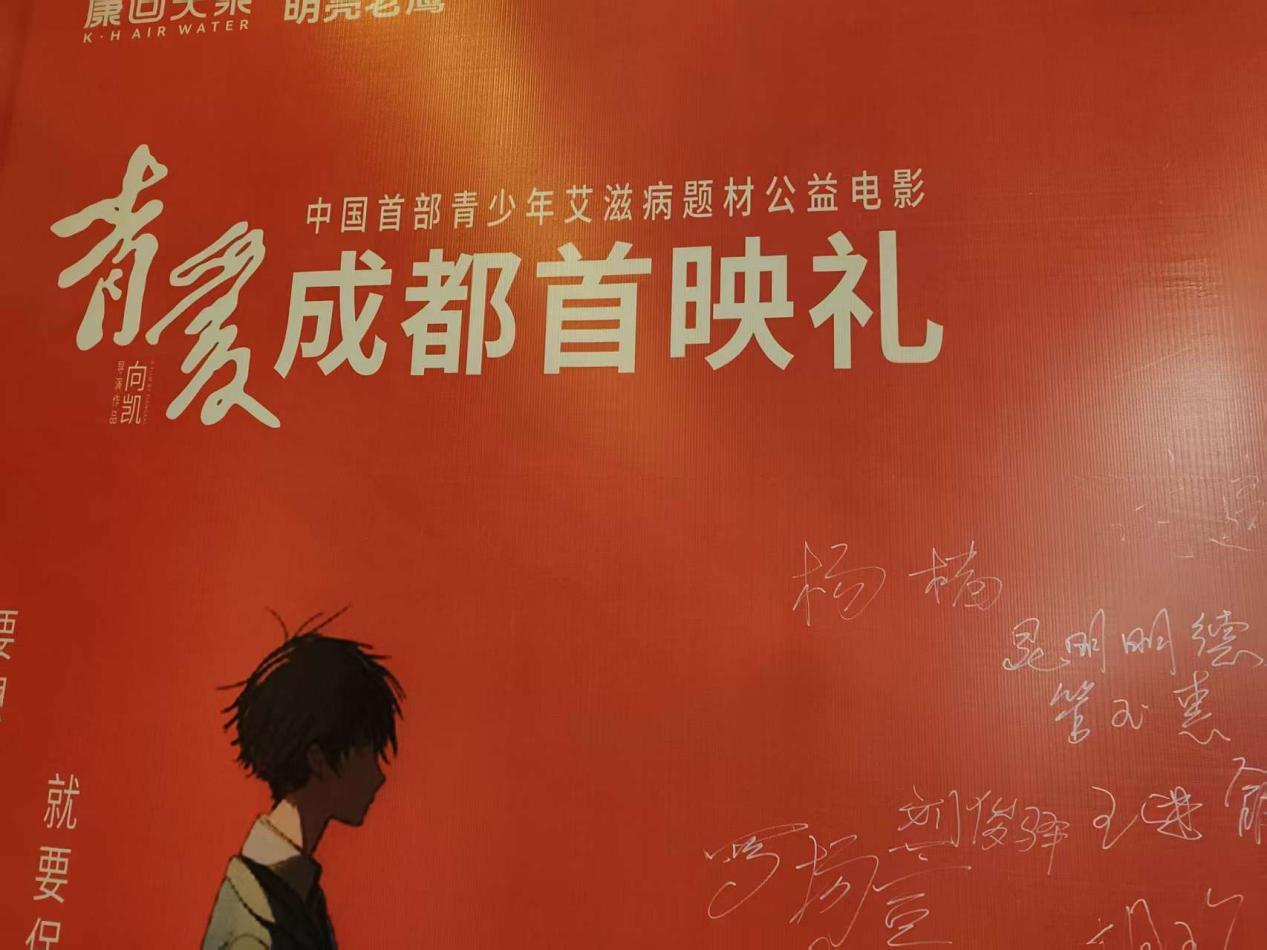 11月8日,中国首部聚焦青少年艾滋病防治的公益电影《青爱》成都首映礼在峨影1958电影城盛大举行。首映现场座无虚席,气氛热烈,教育、民政、卫健、高校、公益组织、媒体记者和爱心企业代表齐聚,共同见证公共健康议题走上大银幕这一重要时刻。