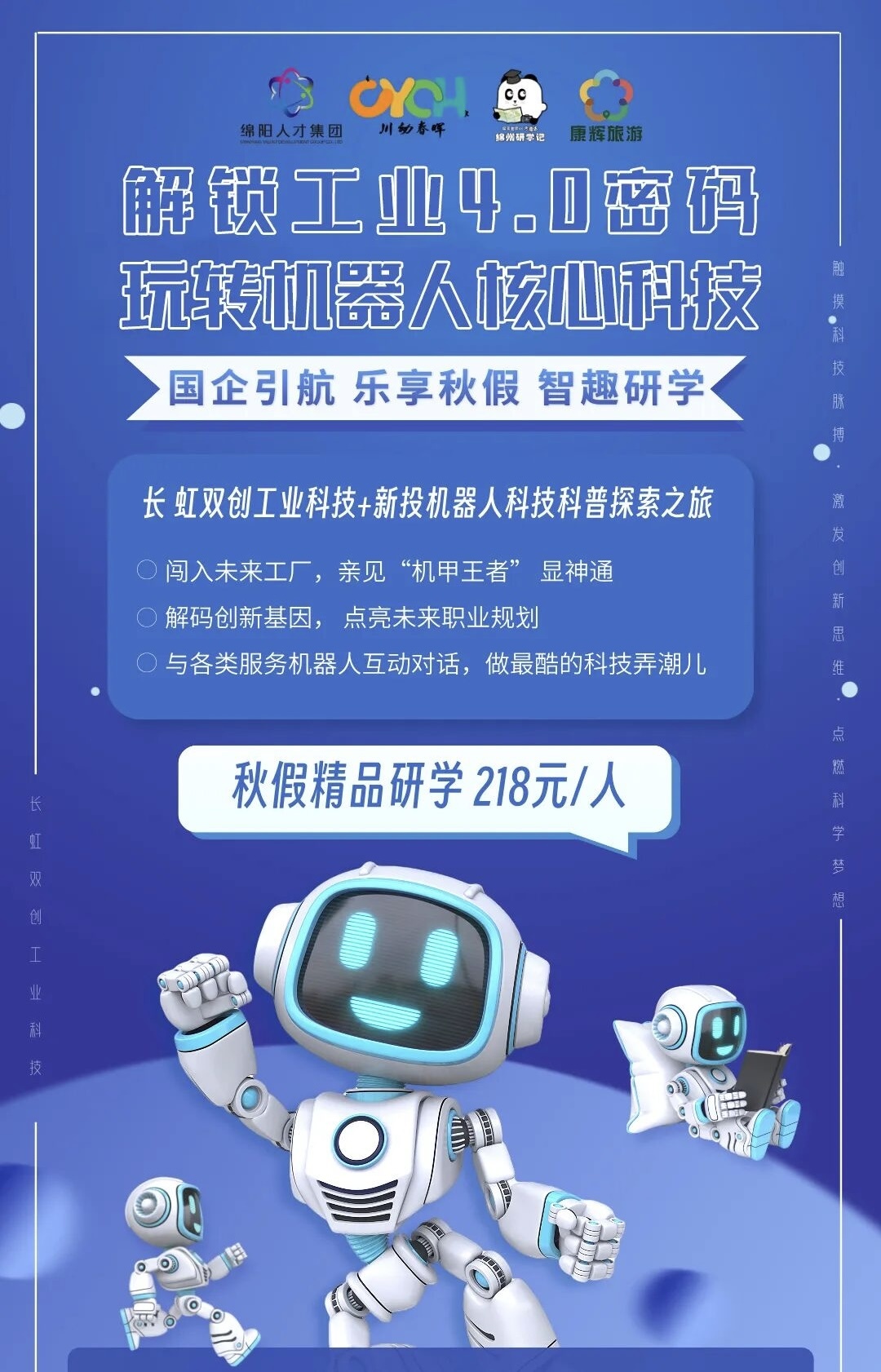 此外,绵阳作为中国唯一科技城,“科技范”的线路当然少不了——“青睐绵阳·欢乐研学”系列活动中,长虹双创工业科技+新投机器人科技科普探索之旅将“科技感”拉满。该线路可带参与研学的家长和学生“闯入”未来工厂,与“机甲王者”互动,并与各类服务机器人互动对话,做最酷的科技弄潮儿。