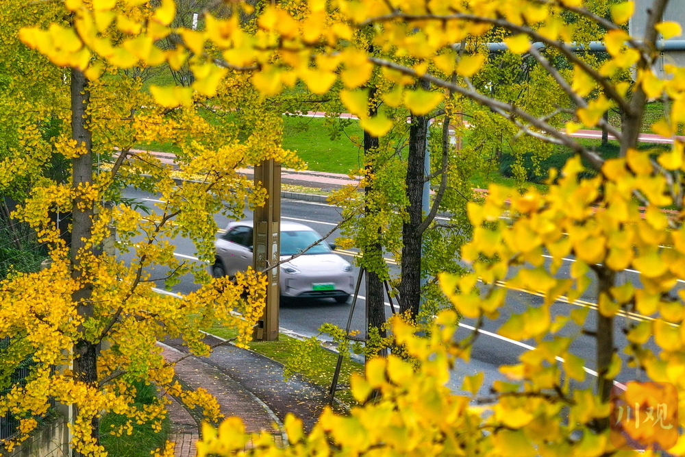 每年深秋初冬,银杏绝对是雅安街头的主角!11月10日,在雅安市雨城区,虽然部分街道旁的银杏树还未完全变成金黄色,但在滨江绿廊公园及滨江西路沿线,第一波专属深秋的金黄银杏美景已经上线,成为一道靓丽的风景。