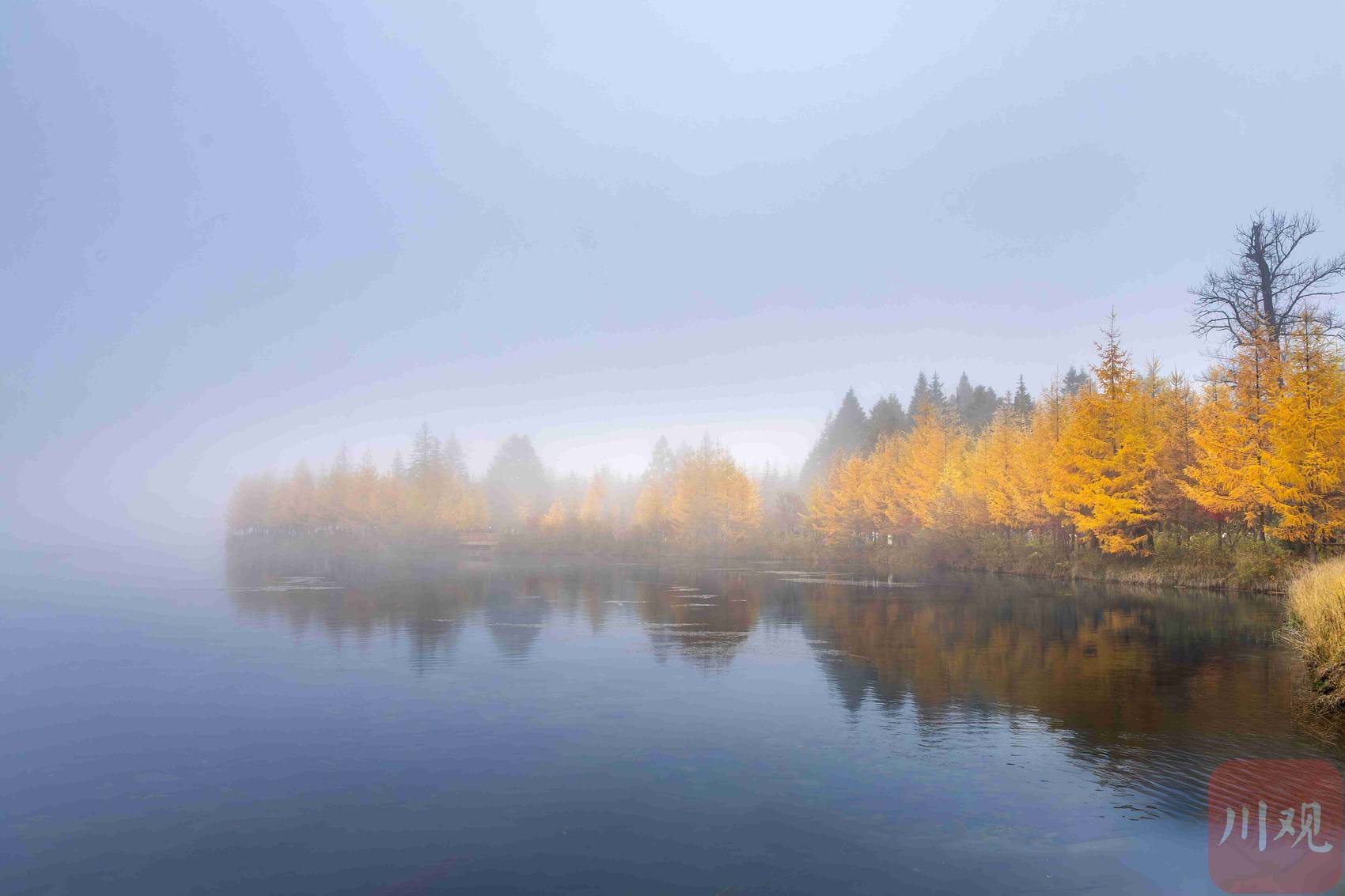 降雪过后,数十里彩林覆上薄雪,猩红、金黄、墨绿的叶片点缀在皑皑白雪间,层次愈发分明。澄澈湖面倒映着雪山、彩林与流云,山间栈道旁雾凇凝霜、松枝挂雪,漫步其中宛如闯入仙境,兼具深秋的绚烂与冬雪的素雅。