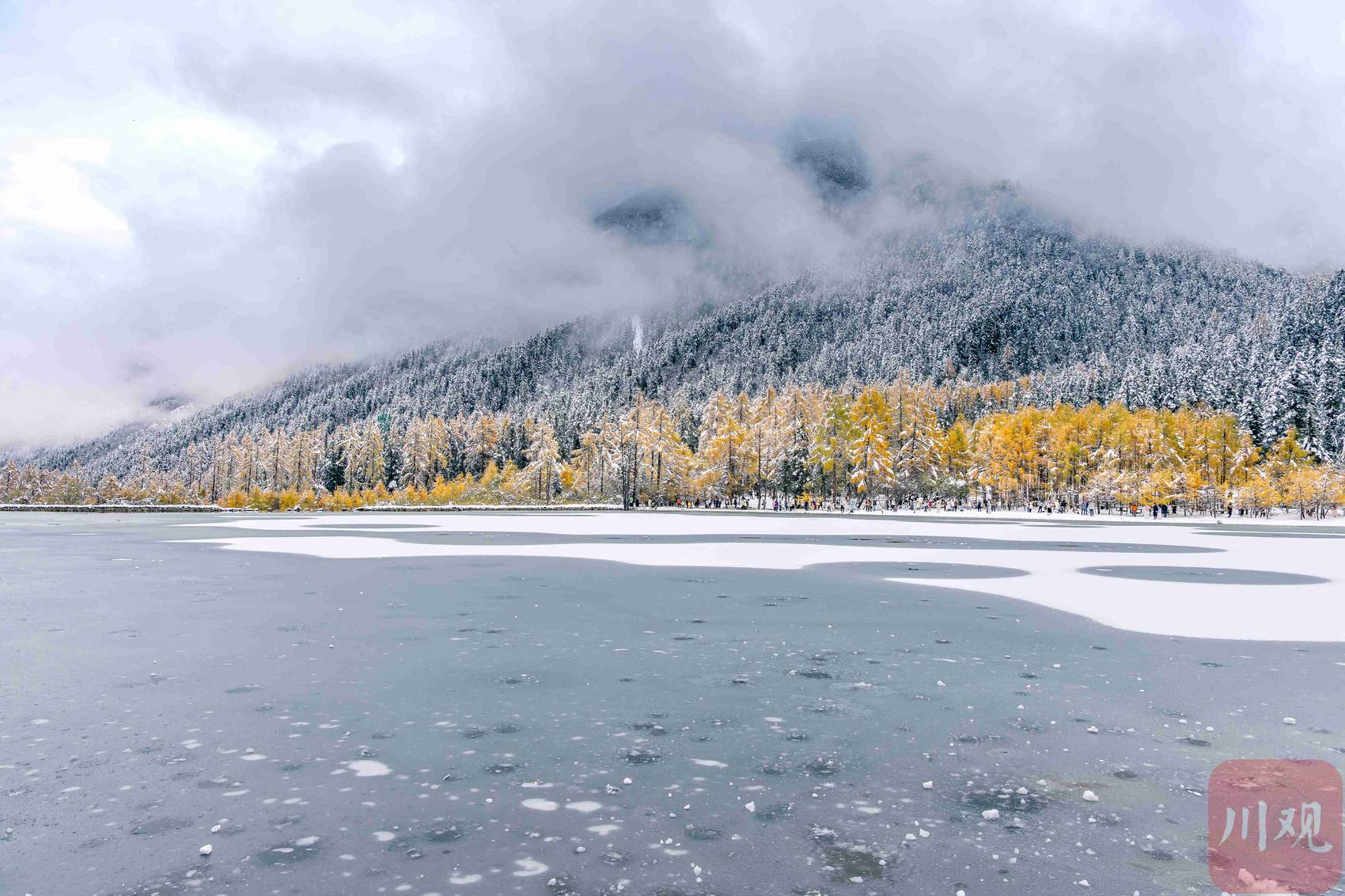 11月初,川西毕棚沟景区迎来深秋降雪,白雪与彩林、碧水相映成趣,将这片川西秘境装点成梦幻童话世界,吸引大批游客慕名前往。