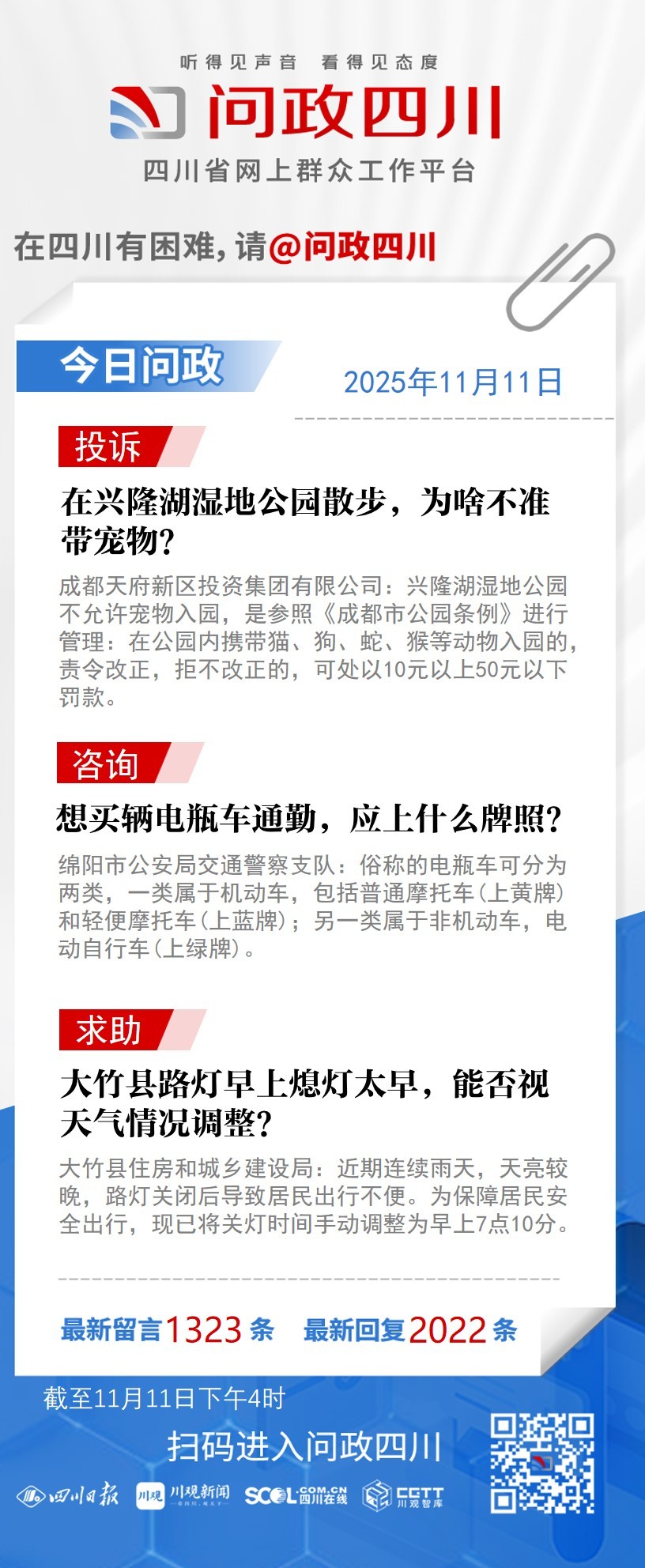 问政四川真管用!路灯调晚了,学生上学更安全;电瓶车上牌说清楚了,买车不迷糊。老百姓的烦心事,件件有回音。这样的平台暖心又实在,点赞!