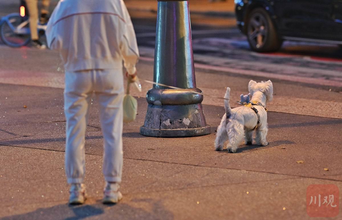 2025年10月17日晚,市民在桂溪公园的路边遛狗。川观新闻记者 何海洋