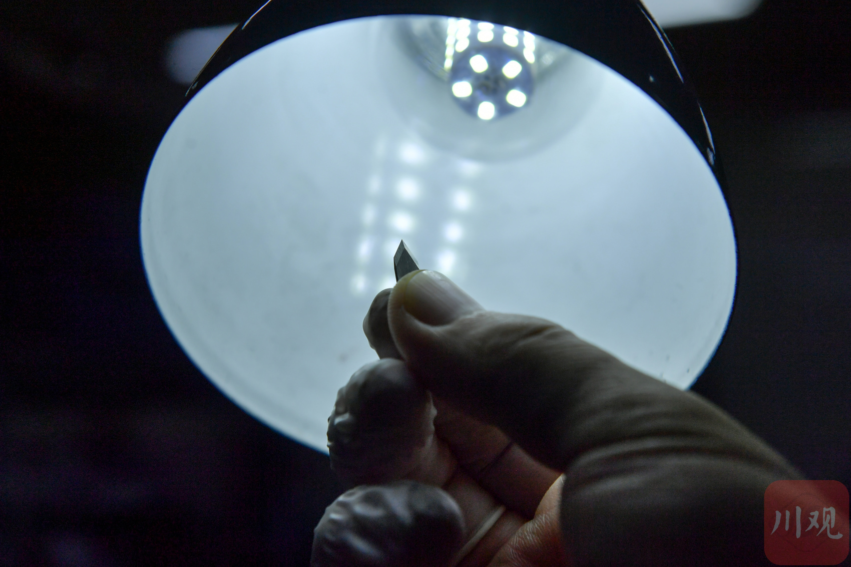 2025年11月11日,位于四川成都双流经开区的四川神工钨钢刀具有限公司车间,工作人员准备把镗刀片放大120倍,检测刀刃宽度。