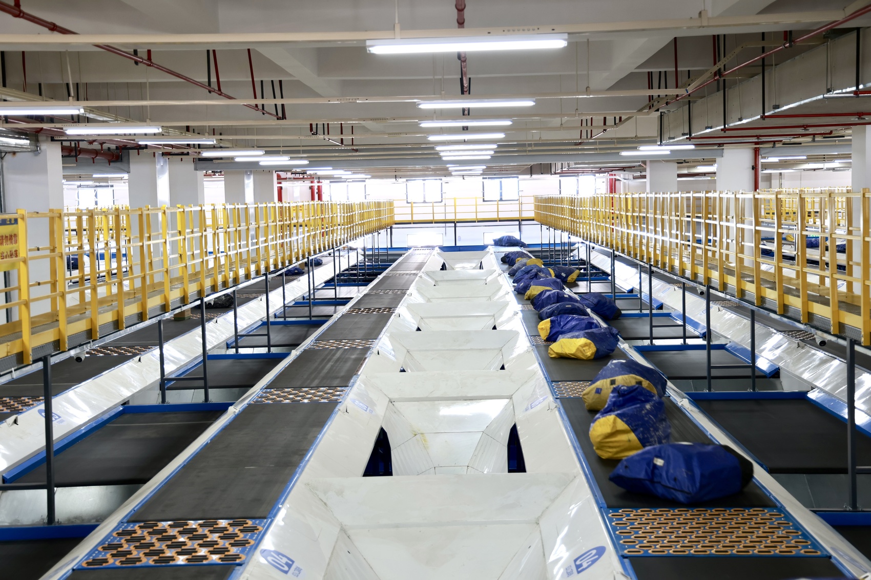 才建成投用的中通快递西南总部项目采用矩阵分拨等新技术提升分拣效率。受访者供图