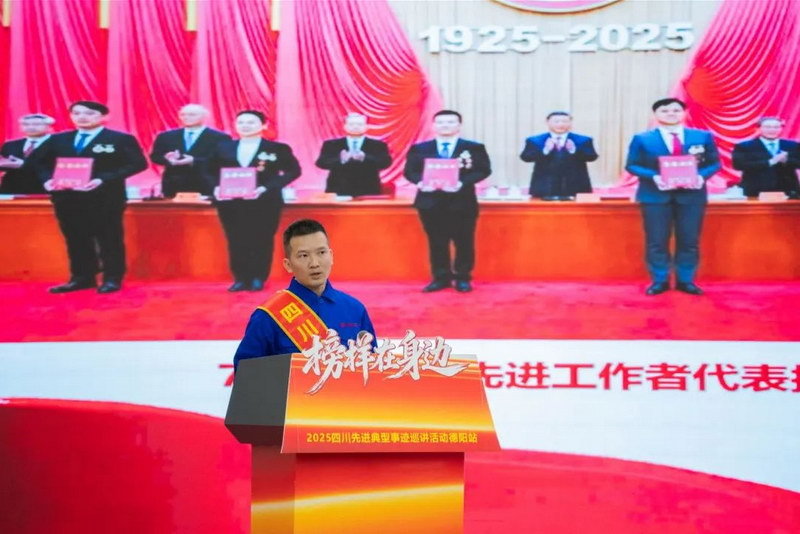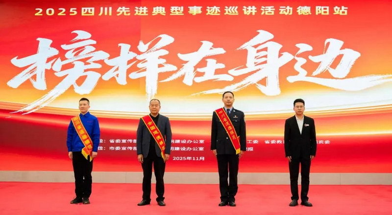 11月11日下午,由省委宣传部、省精神文明建设办公室、省委省直机关工委、省委教育工委、省国资委联合主办,中共德阳市委宣传部、德阳市精神文明建设办公室、四川广播电视报社承办的“榜样在身边”2025四川先进典型事迹巡讲活动德阳站举行。来自不同岗位的四位榜样代表,用扎根岁月的坚守与直面挑战的担当,为现场观众带来了一场直抵人心的精神洗礼。