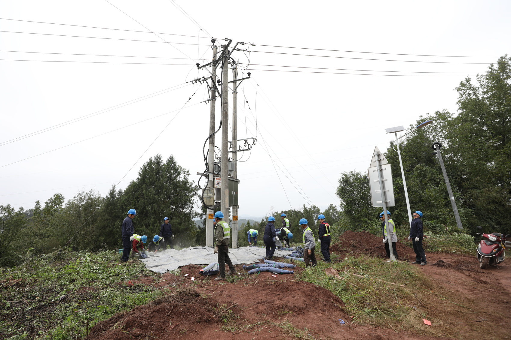 国网达州供电公司工作人员铺设防火毯
