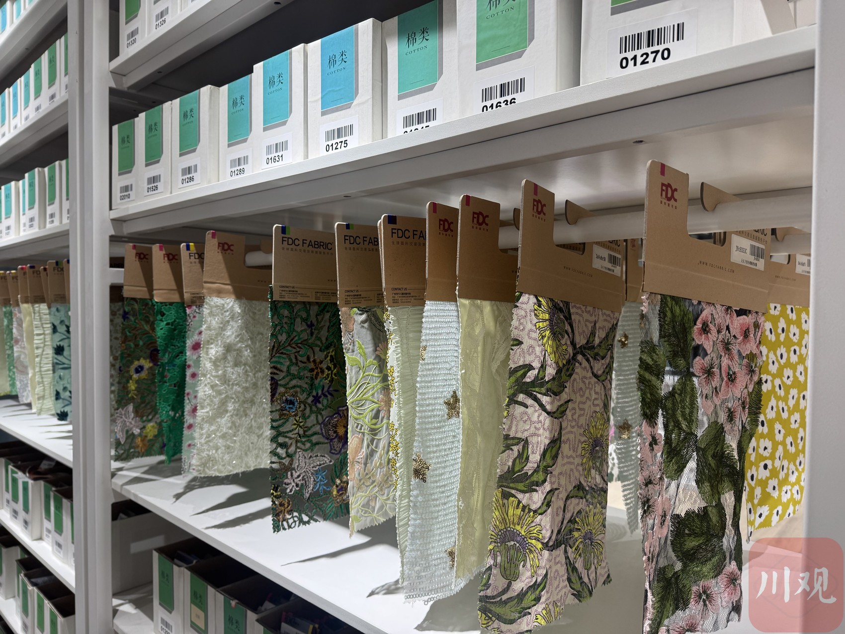 走进中国西部高级定制中心全球面料交易及数据服务平台,仿佛来到了一个大型的“面料图书馆”。现场工作人员介绍,这里收集的面料信息超千万种,设计者可以触摸到面料实物,快速解决设计需求。