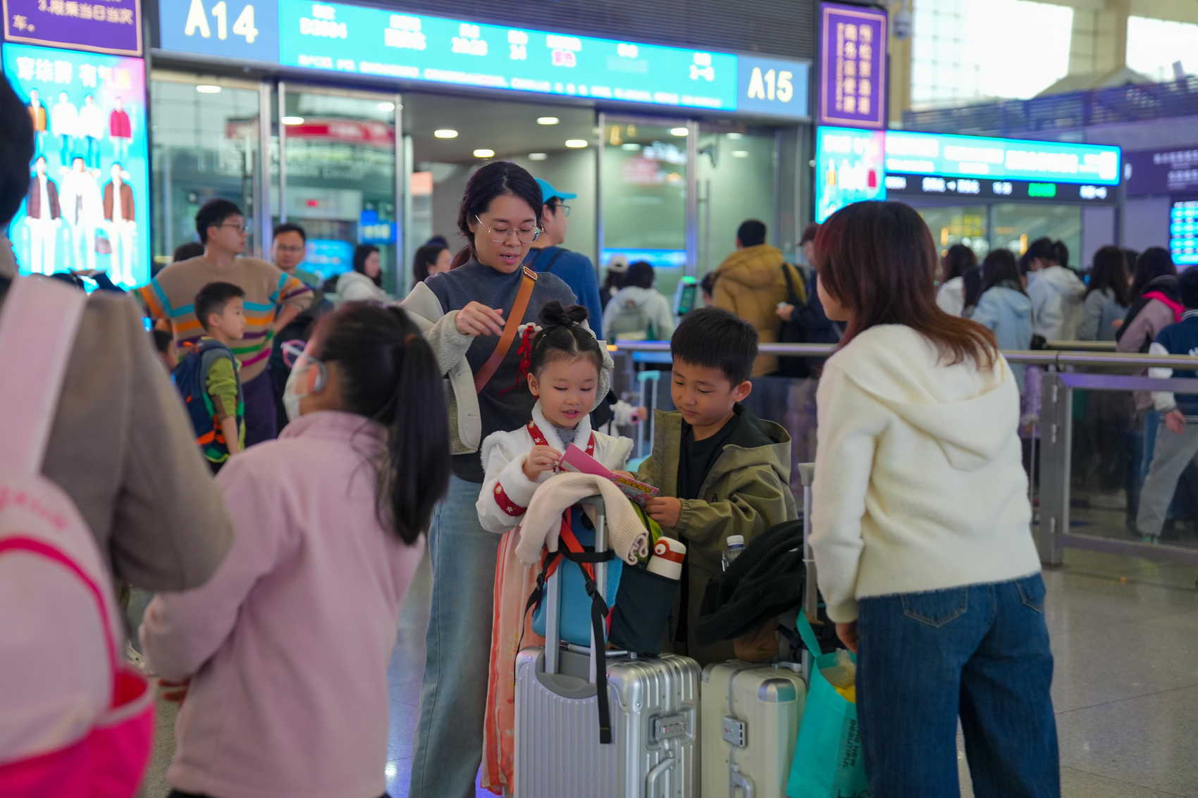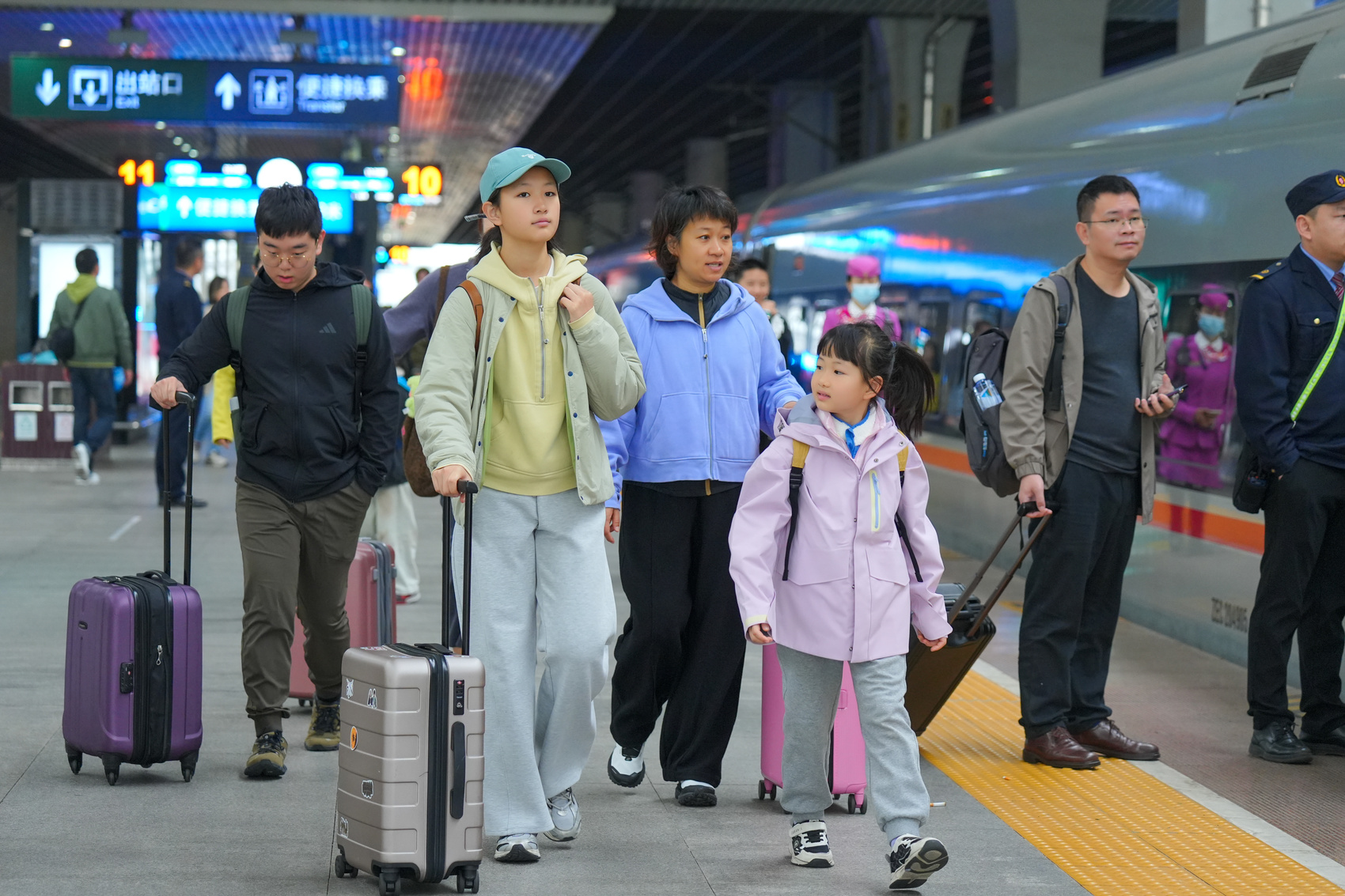 铁路部门表示,为进一步满足首个中小学春秋假期间顺畅、高效、便捷的出行需求,车站周密制定旅客进站、购票、候车、乘降等全流程方案。同时,进一步做好进出站旅客流线优化,设立绿色(急客)通道,加强对小朋友安全乘车的引导,动态增加安检验证通道、工作人员和志愿者,保证旅客乘降安全顺畅。