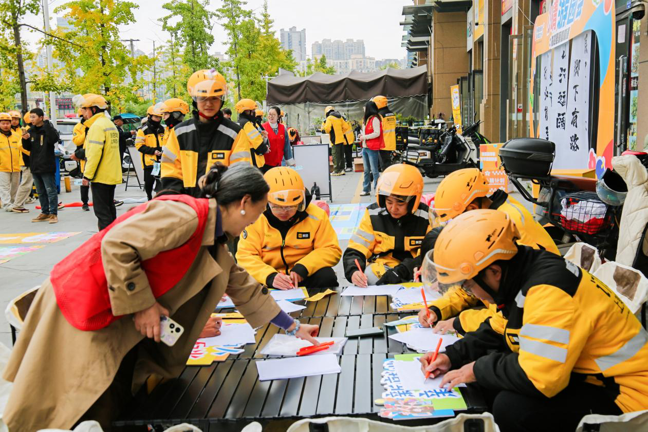 11月11日,成都市新都区三河街道开展“心晴游园会”活动,外卖骑手通过绘画心理测验,了解评估自身心理健康状态。