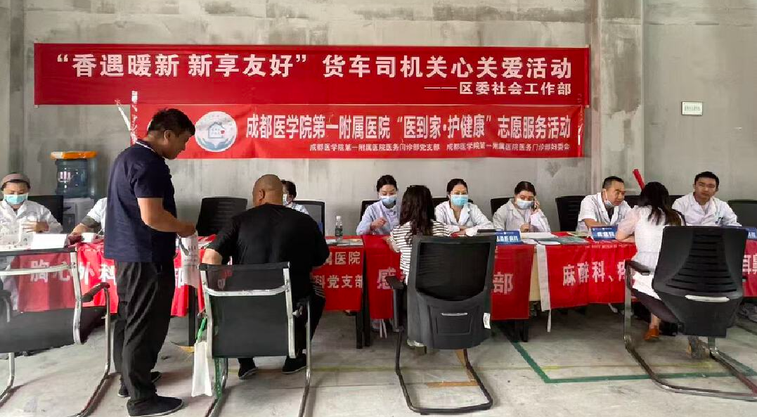 5月14日,成都医学院第一附属医院到新都传化智慧物流港为货车司机开展健康科普志愿服务。