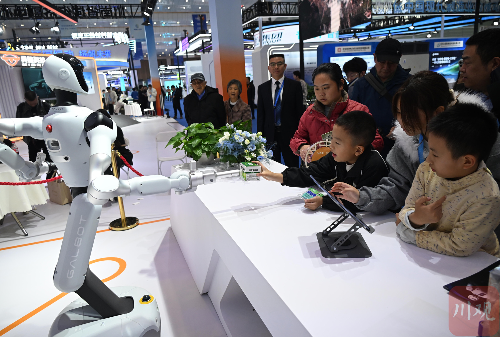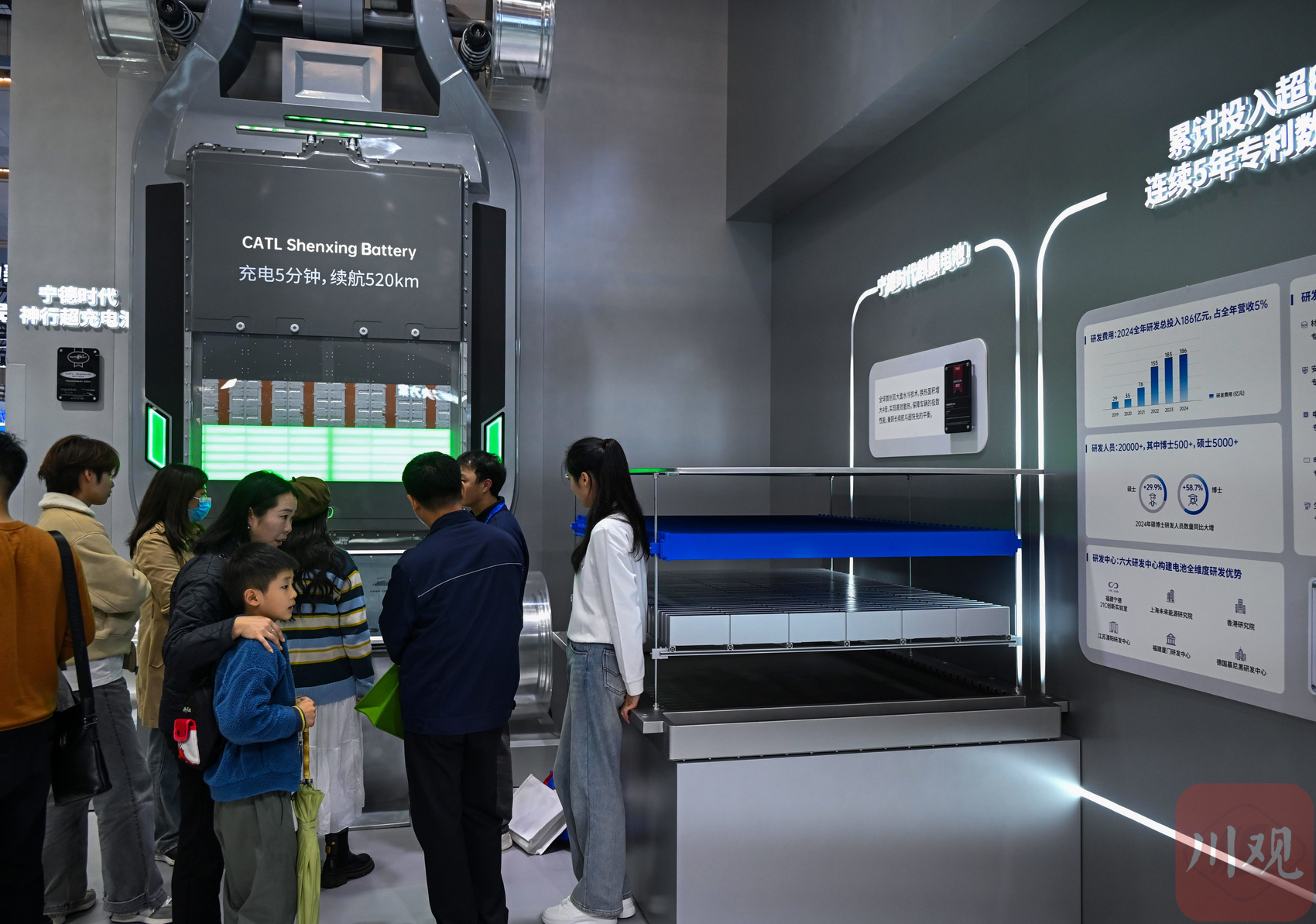 记者在展区内看到,宁德时代展区的峰飞航空eVTOL(电动垂直起降航空器)、人形机器人和机器狗、特斯拉赛博越野旅行车、纯电船舶……超200家参展商纷纷拿出 “明星”产品,吸引市民参观了解。