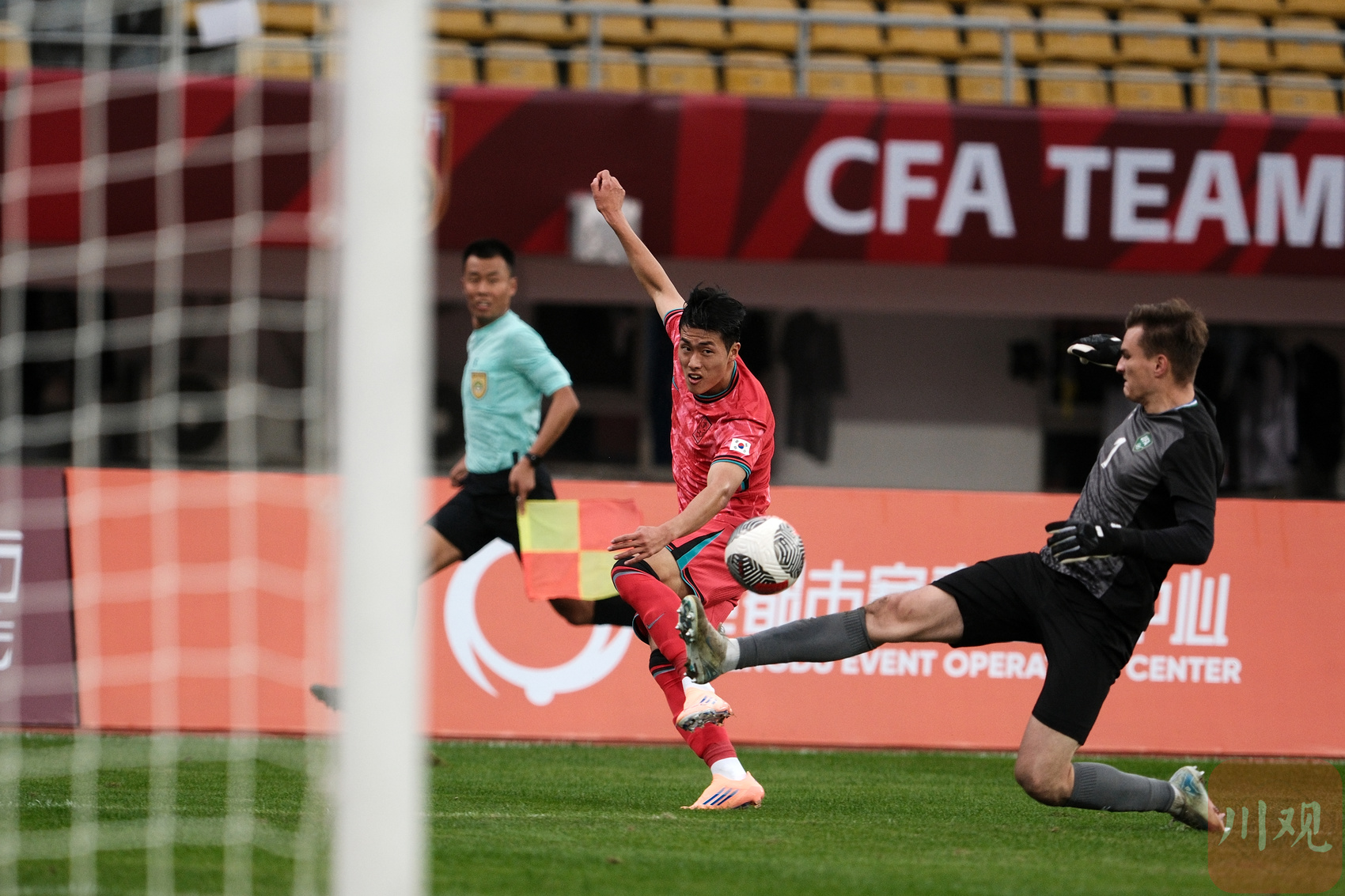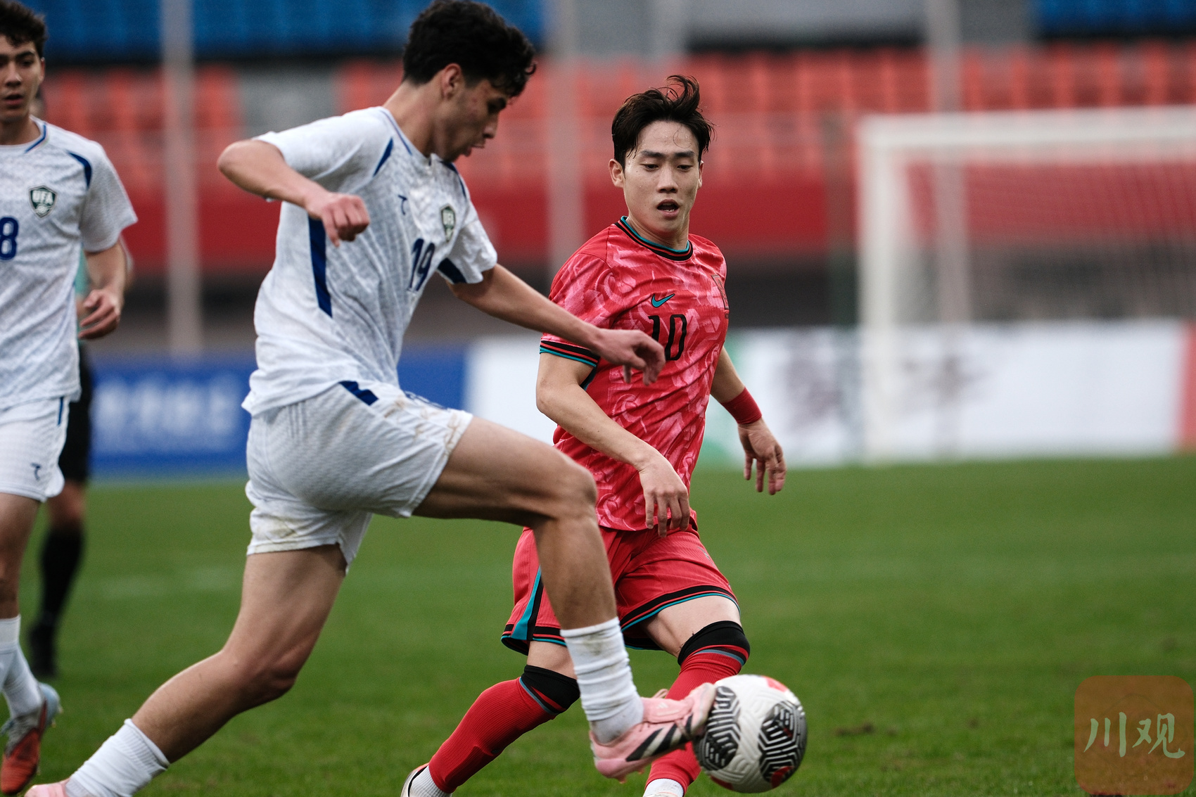 11月12日,2025“熊猫杯”国际足球锦标赛在成都正式开赛。首轮较量中,亚洲一流强队韩国U22迎战实力稳步提升的乌兹别克斯坦U22。