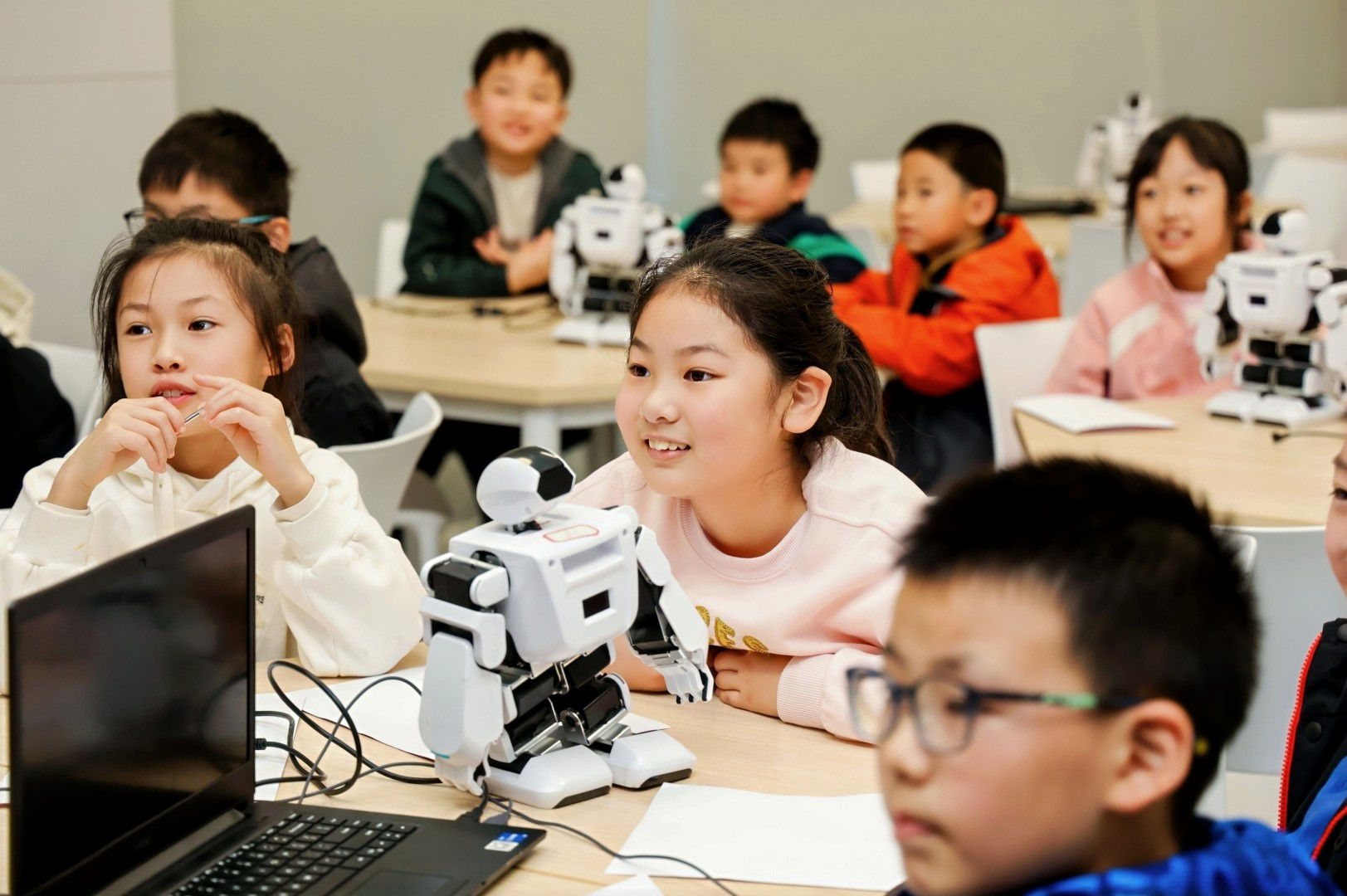 同学们在新投机器人科技科普课堂近距离接触机器人