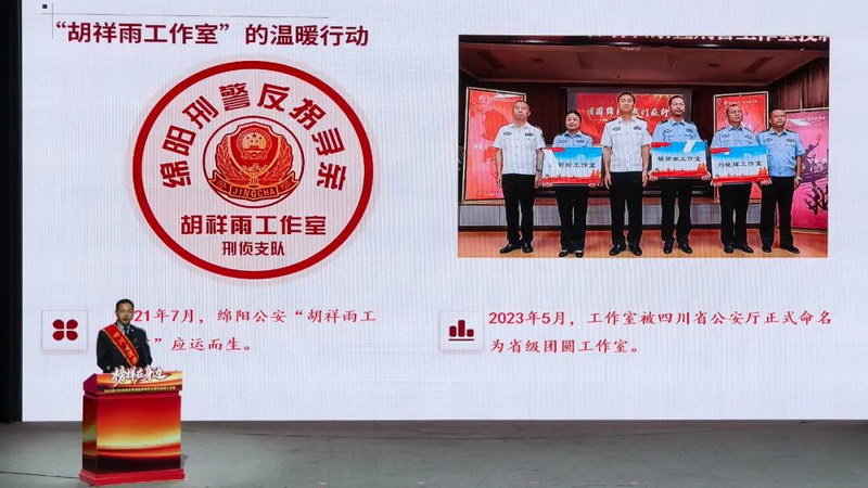 “每面锦旗背后,都是一个离散家庭的重新拥抱。”绵阳市公安局刑侦支队一大队教导员胡祥雨的话语质朴深情。26年从警生涯中,他从警犬训导员转变为群众口中“有温度的胡叔叔”,6年间承接全国寻亲求助5万余次,促成792个家庭团圆。当他念出被拐者“胡叔叔,我想见我妈”的微信留言时,台下不少观众悄悄擦拭眼角。