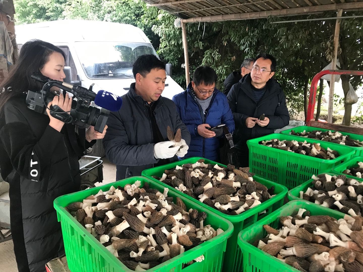 胡浩正在打包羊肚菌。受访者供图