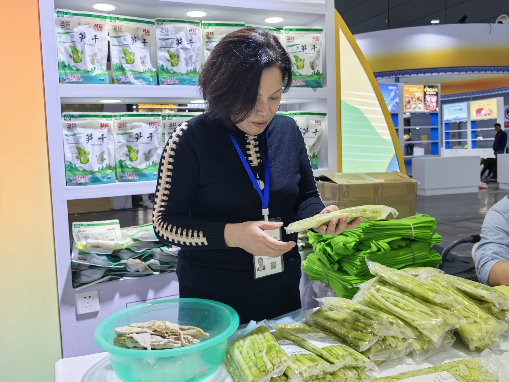 参展商正在整理带来的清水笋产品。