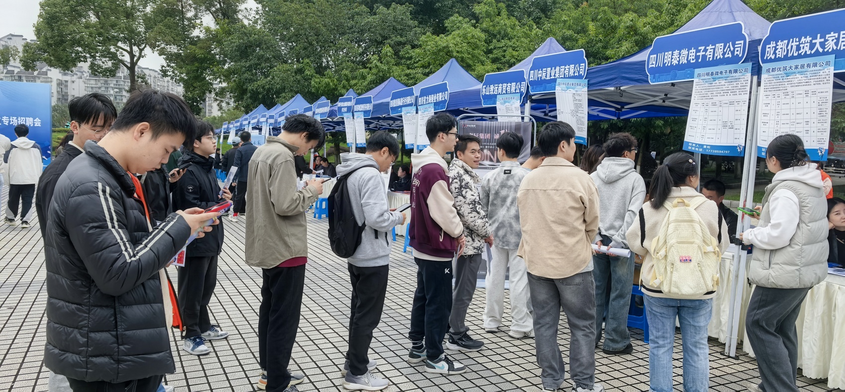 11月13日,活动走进成都理工大学工程技术学院。与前一天师范类院校的招聘特色不同,针对该校突出的理工科专业背景,本场招聘会重点集聚了人工智能、电子通信、汽车、广告传媒、机械制造等多个行业领域的52家企业,提供技术、研发、市场、销售、行政等各类岗位,招聘需求人数超过1764人。为学子们搭建起“专业对口、学以致用”的就业“快车道”。