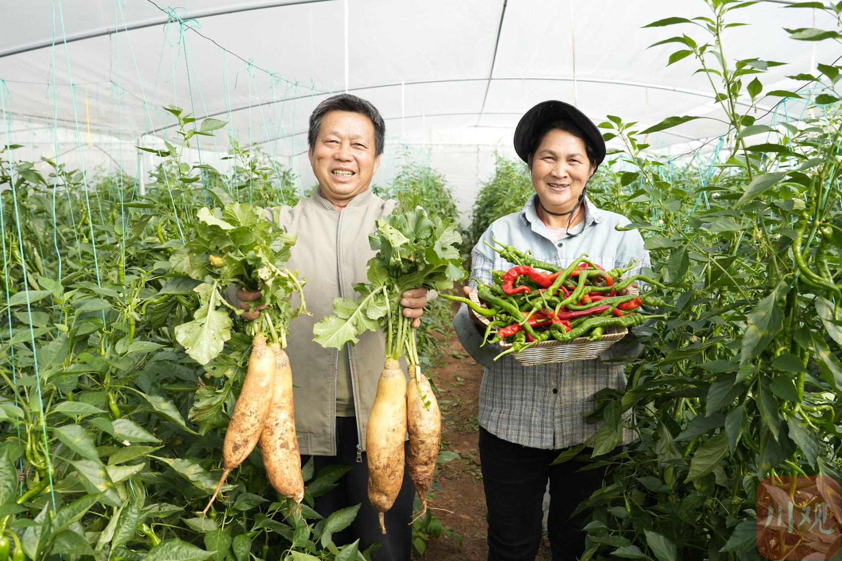 11月8日,木里县乔瓦镇簸箕箩村的余先军家,7个蔬菜大棚在阳光下泛着银白的光。棚内,这位皮肤黝黑的58岁农民用手拨开叶片,展示红红的辣椒。他告诉记者:“以前进入11月,我们这里就没法种蔬菜了。”