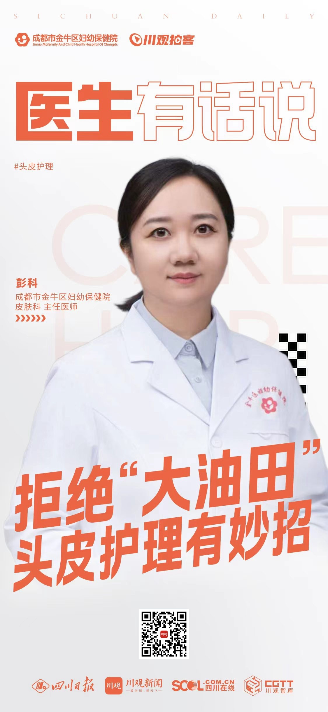 本期栏目,来自成都市金牛区妇幼保健院皮肤科的主任医师彭科,就跟大家说一说为什么一些人的头发更容易油,以及如何拯救头皮“大油田”。