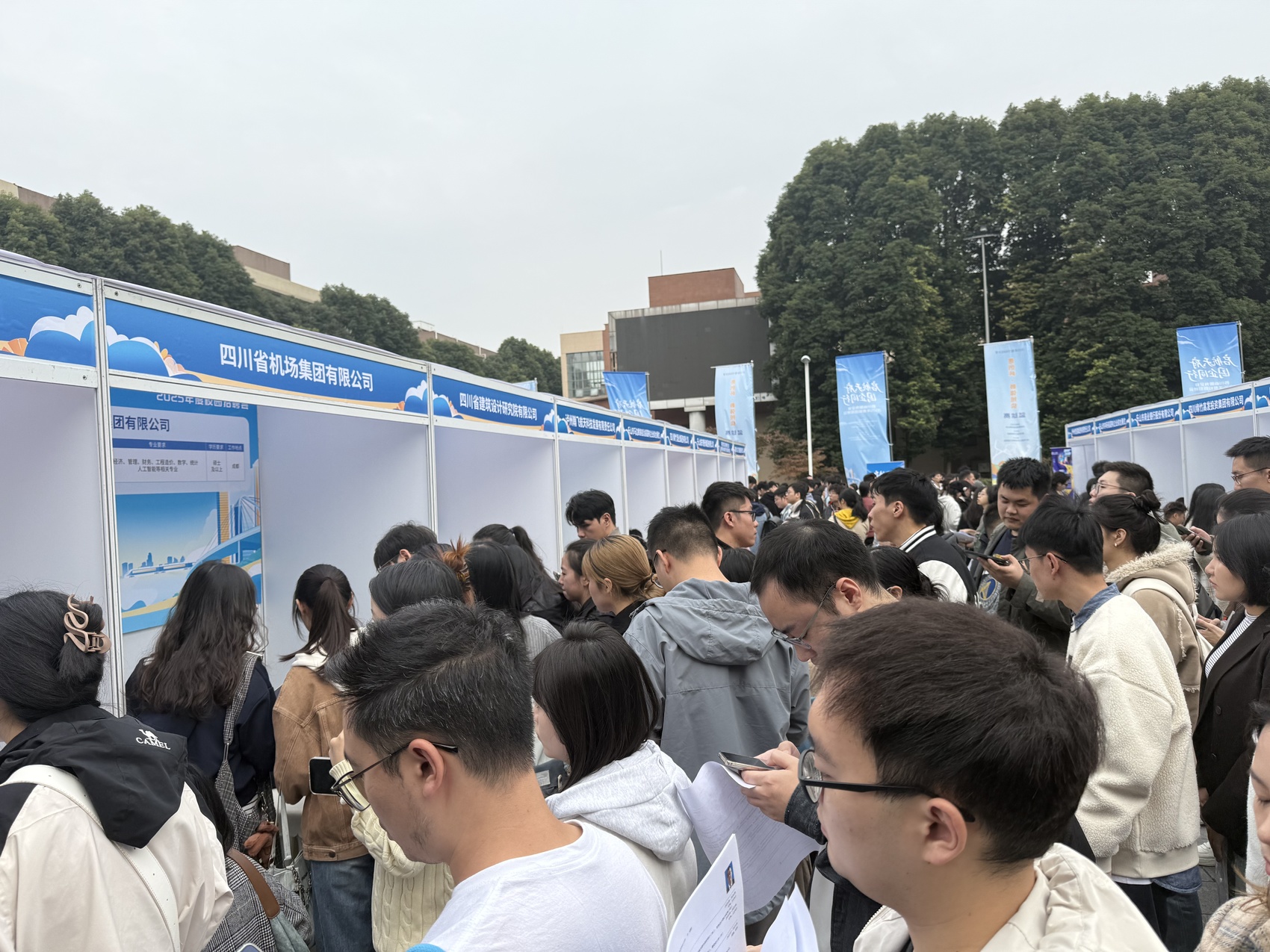 摩肩接踵,人流如织,11月13日下午,电子科技大学学生活动中心广场一派火热景象,“启航天府 国企同行”四川国有企业2025年度校园招聘会在此举行。此次招聘会汇聚了225家中央在川、省属和市(州)属国有企业,释放岗位超2000个,涵盖能源、交通、建筑、医疗、文旅、先进材料、电子信息、装备制造、现代农业等多个领域。