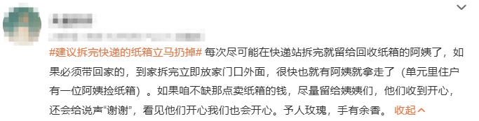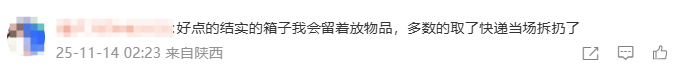 在这个话题下,不少网友表示一般不会把快递箱带进门,有的在快递站就拆完了↓↓↓