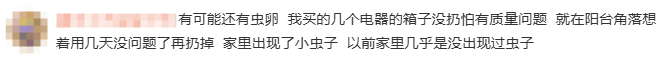 除了甲醛,快递纸箱在物流过程中经过较远的路程,会沾染大量污渍、细菌、病毒、虫子。放在家里,还有可能成为“蟑螂窝”。