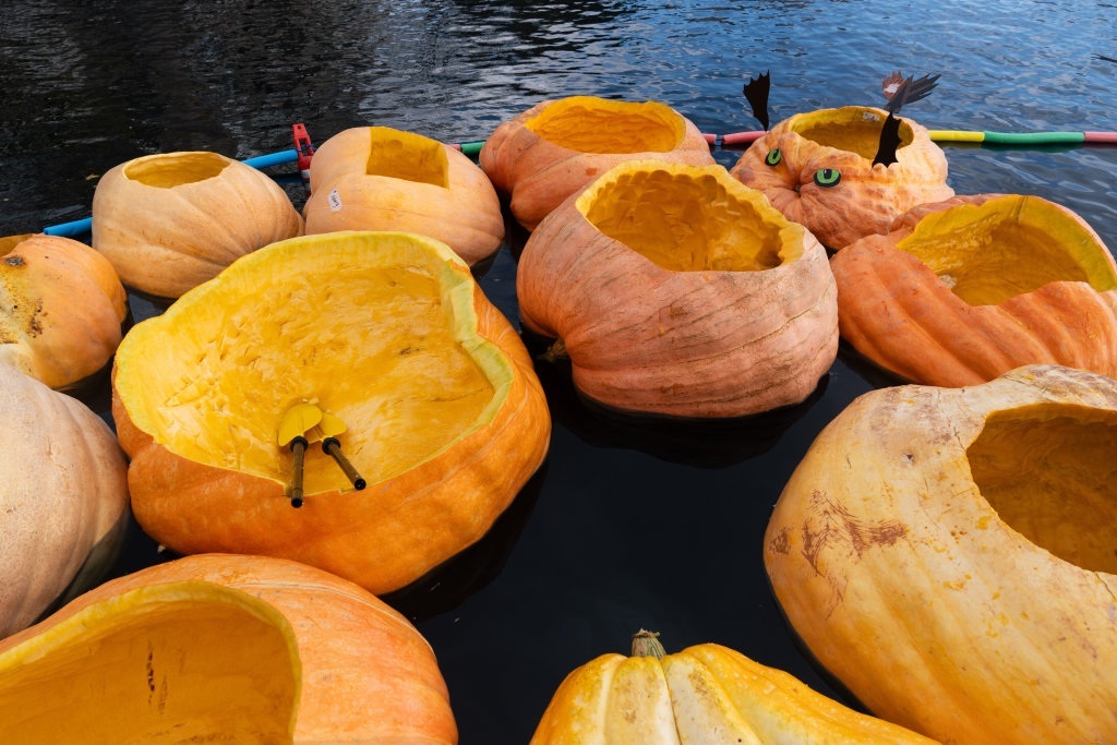 在美国俄勒冈州的“划南瓜大赛”上,选手把几百斤的南瓜挖成船,打扮成史莱克或超级英雄,在人工湖里比赛划行,就像一场水上嘉年华。