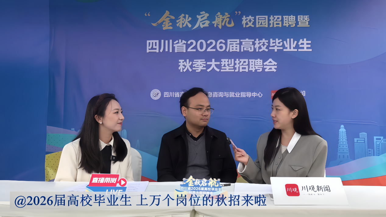 活动期间,由四川省人力资源和社会保障厅、四川日报社、共青团四川省委、四川省政府国有资产监督管理委员会携手打造的“川赢位来”青年就业创业综合服务平台也在现场同步开展直播带岗,对话企业招聘负责人、就业指导老师,为大家带来招聘岗位信息、就业咨询与辅导。