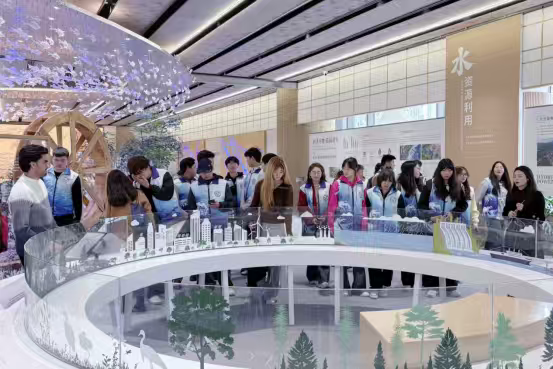 在“行走的思政课”环节中,学院依托行业资源打造特色思政课程,与行业单位共建“水利思政实践教学体系”。马克思主义学院思政教师以博览馆内的治水文物、历史场景为“活教材”,将都江堰“深淘滩、低作堰”的千年智慧与当代治水兴川的丰硕成果相结合,向同学们生动解读水利精神的时代内涵。从古人“乘势利导、因时制宜”的治水哲学,到现代水利工程守护民生的技术突破,再到青年一代“水利报国”的责任担当,让同学们身临其境地感受蜀水文化的深厚底蕴与水利科技的魅力。