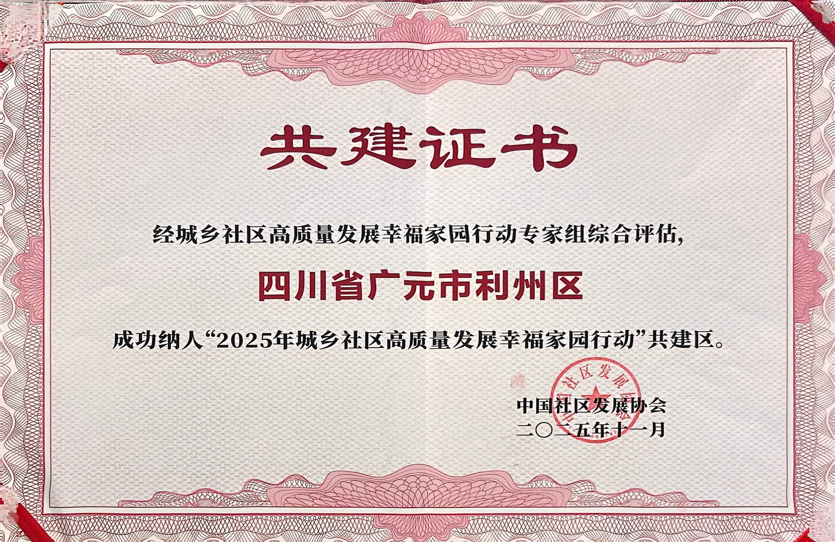 11月14日,从广元市利州区委宣传部获悉,日前,2025年国家级“幸福家园行动”共建名单正式公布,广元市利州区凭借在城乡社区高质量发展方面的突出成效,成功入选“2025年城乡社区高质量发展幸福家园行动共建区”。据悉,全国仅有9个县区获此殊荣,利州区为四川省唯一入选单位。