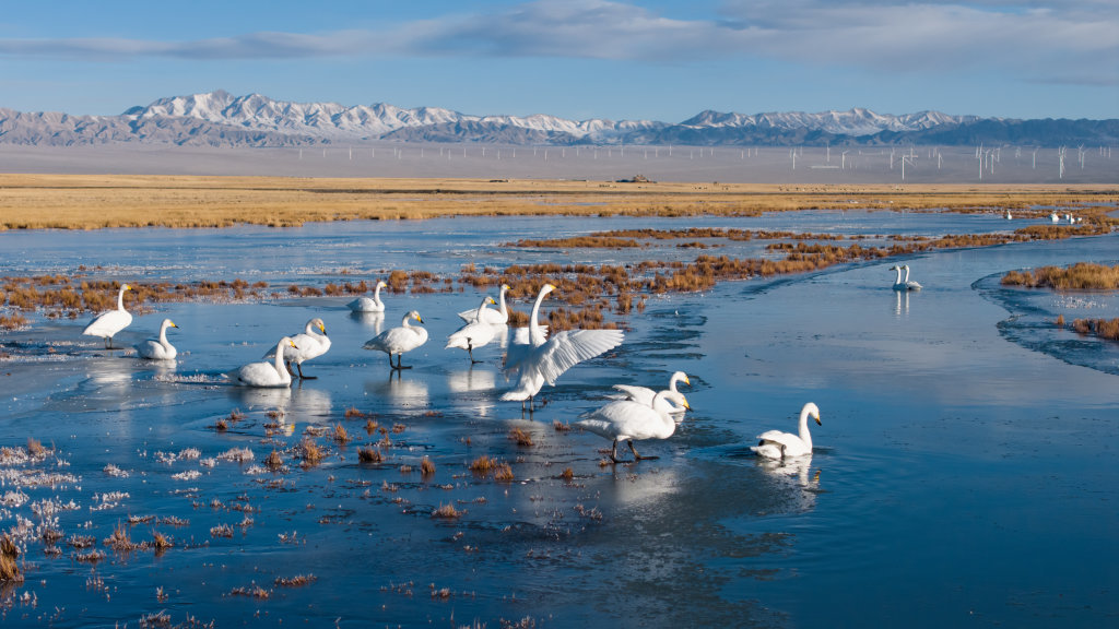 甘肃阿克塞:湿地冰湖天鹅舞