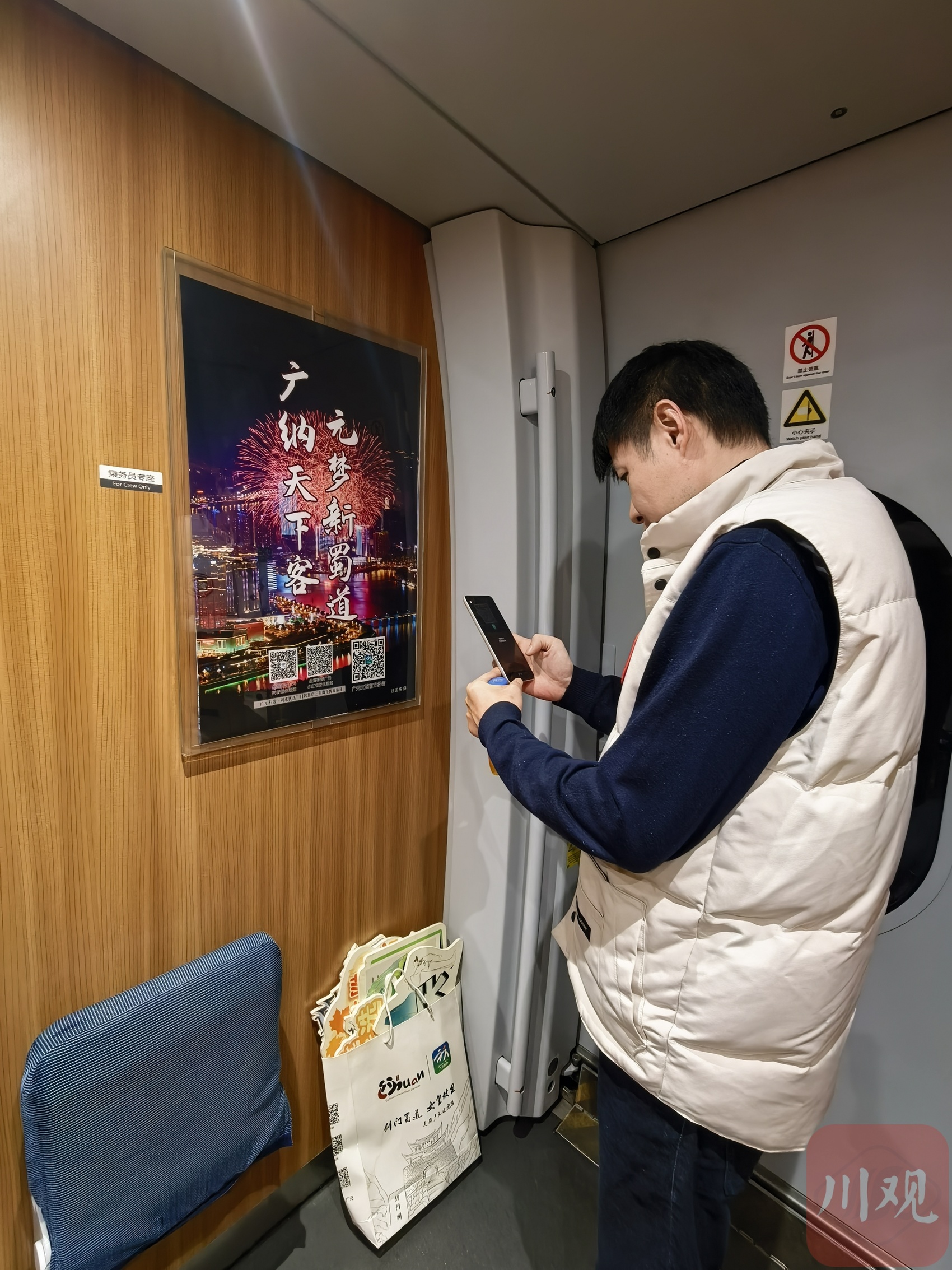 旅客扫描二维码,了解“剑门蜀道 女皇故里”品牌高铁上的广元文旅宣传内容。