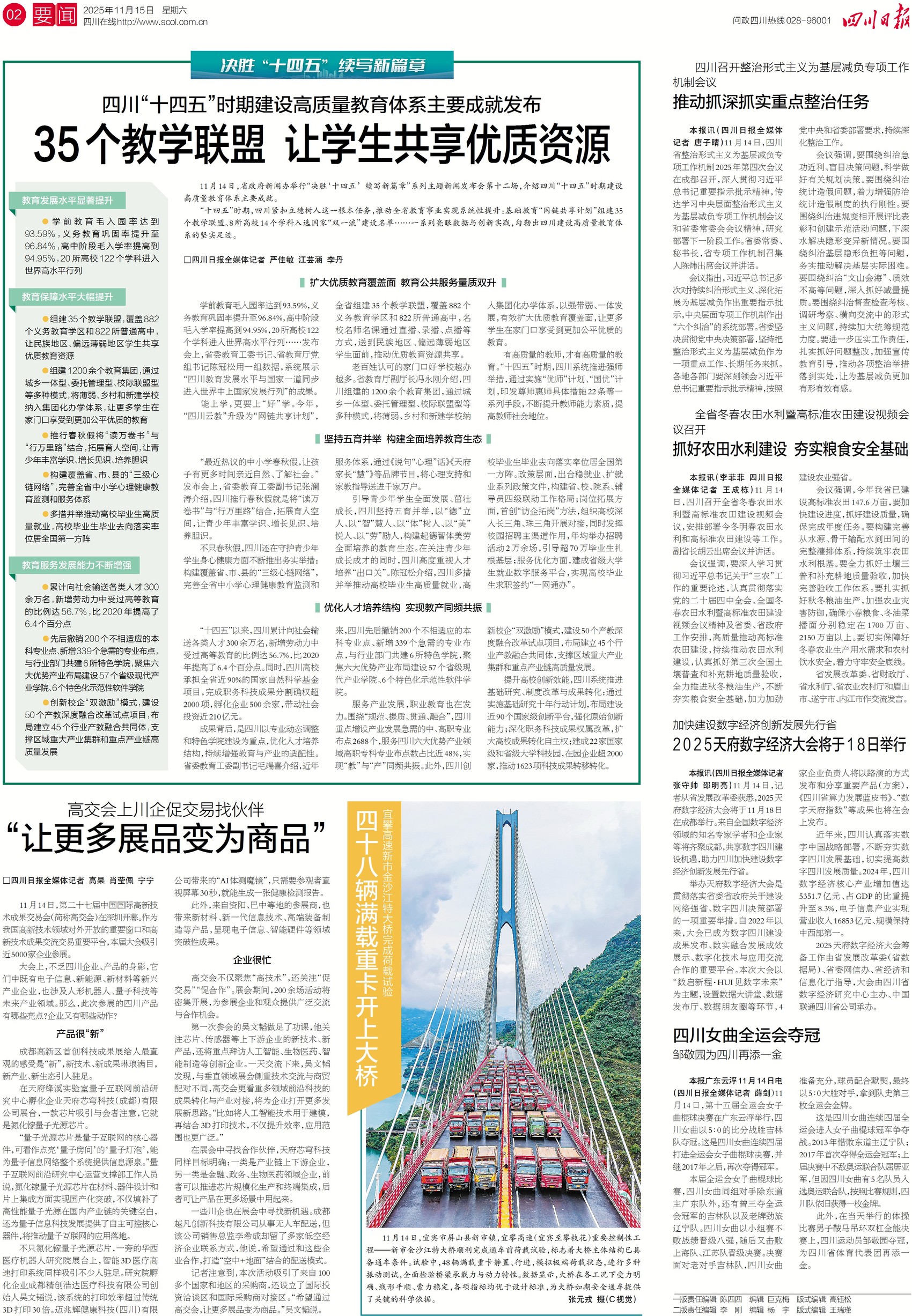 “十四五”期间,四川教育事业取得显著成就。学前教育、高中阶段毛入学率及义务教育巩固率稳步提升,20所高校122个学科进入世界高水平行列;通过组建教学联盟、教育集团等模式,让更多学生在家门口享受到更加公平优质的教育;推行春秋假、构建“三级心链网络”,促进学生全面发展。关注二版,看四川如何建设教育强省。