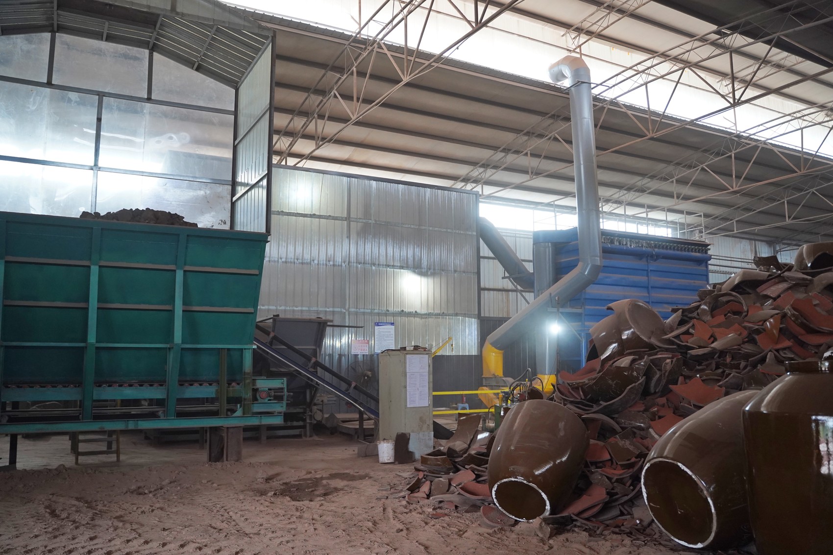 “以前那一片地方全都堆的是烧废的吨罐,但现在完全都没有了!”隆昌市碧檀陶瓷有限公司副总经理刘长俊指着远处348国道边的废陶罐处理点告诉记者,今年上半年,公司历时三年研发的废旧陶瓷颗粒回收技术正式投产,成为全国极少数对废制陶瓷产品进行颗粒回收再利用的企业。截至目前已消化上万个烧制坏损的土陶酒罐,在传统玻陶产业中走出一条 “变废为宝” 的绿色发展之路。