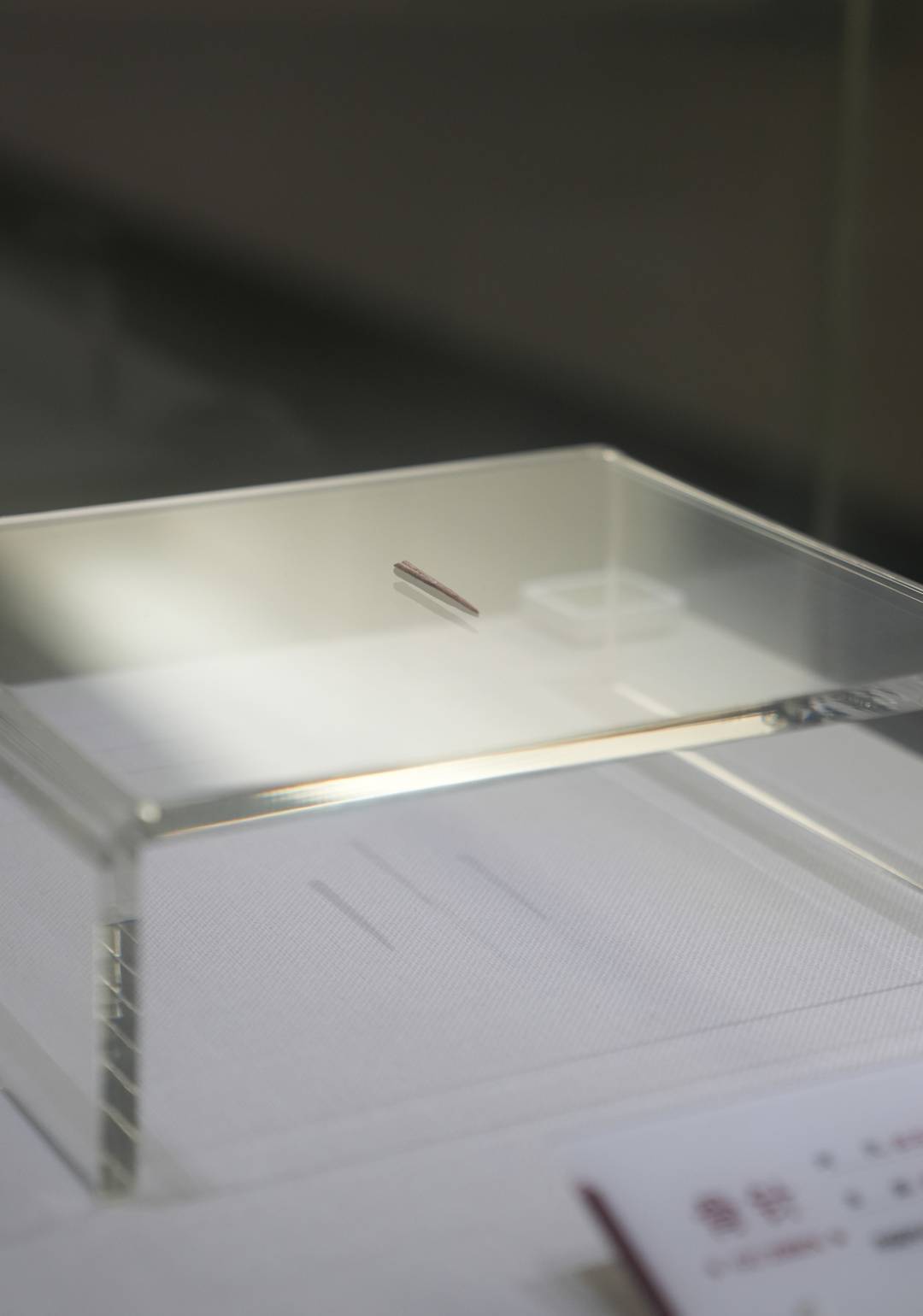 “骨针、旧石器时期、攀枝花博物馆藏。”一根长约6厘米的磨制骨针,摆在进门拐角处“C”位玻璃柜中,恒定温度与湿度控制,显示着它的重要性。
