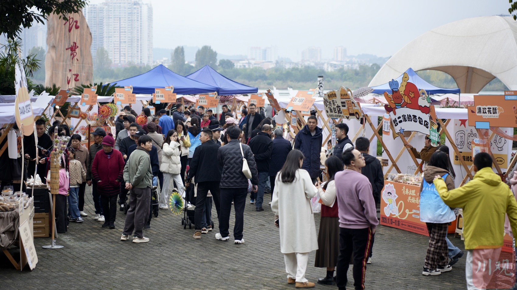 11月15日,“青春主理·共焕遂宁”主题市集在遂宁摩天轮启幕,邀请遂宁青年解锁秋冬限定快乐。现场以观音湖为幕,摩天轮为景,为青年提供天然打卡地。