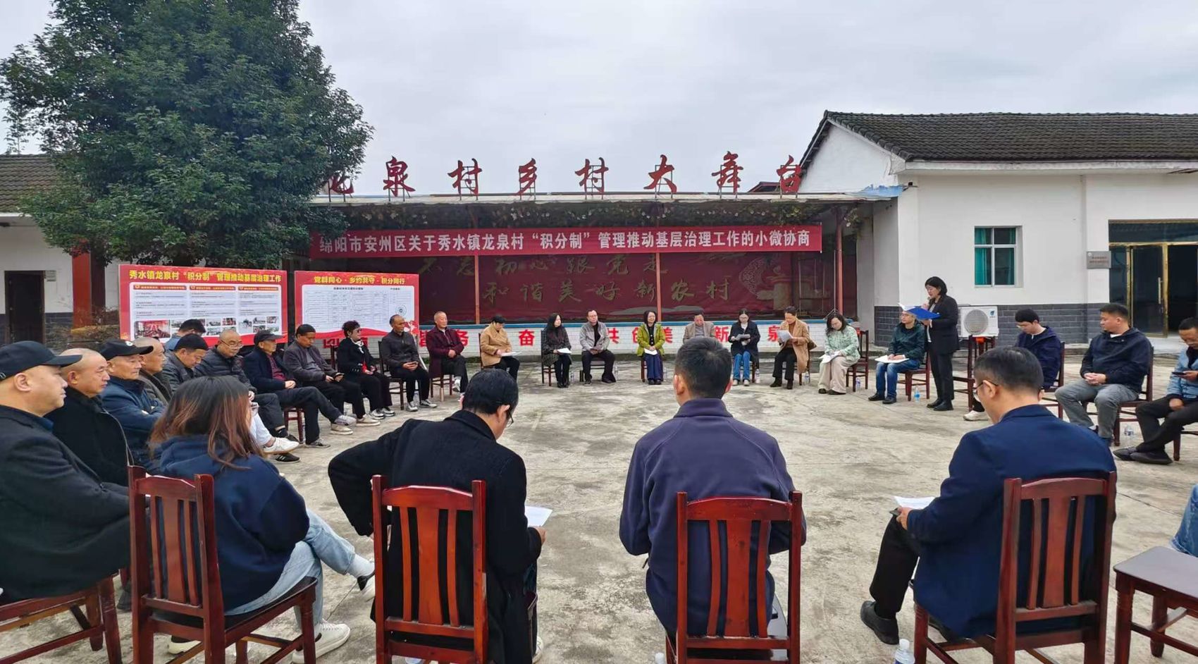 11月12日,绵阳市安州区秀水镇龙泉村的院坝里,板凳围成一圈,区政协联络指导组、区政协委员、镇机关干部、各界代表人士、村“两委”成员和村民代表坐在一起,没有主席台,没有发言稿,拉家常式地晒成效、说难题、想办法,一场热热闹闹的“积分制”坝坝协商会开得正酣。