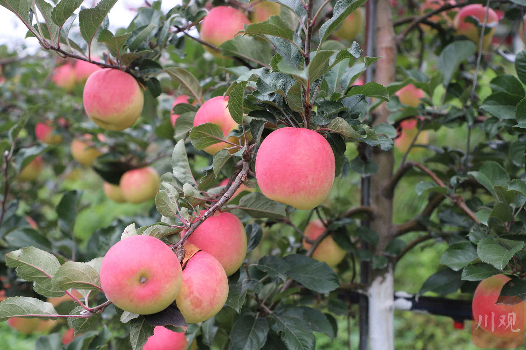 在岷江上游的河谷地带,红黄相间的苹果挂满枝头,到处是丰收场景。“擦擦就能吃,甜得很!”果农王学彪举着刚摘的“瑞雪”苹果说。