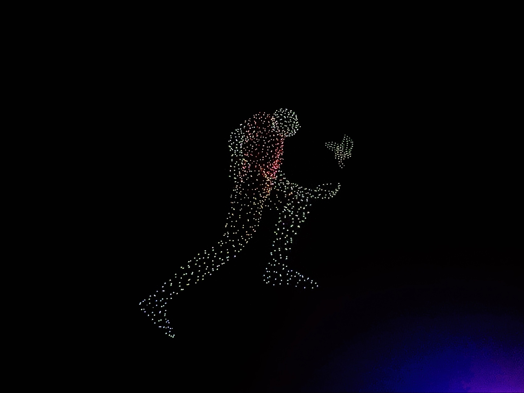 由无人机组成的跑者摘桂冠的动态图案。(甘文颖 摄)