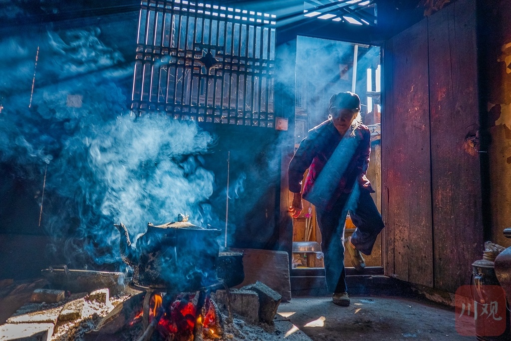2021年5月8日,云南大理云龙诺邓古村,一位老人在自家厨房忙碌。
