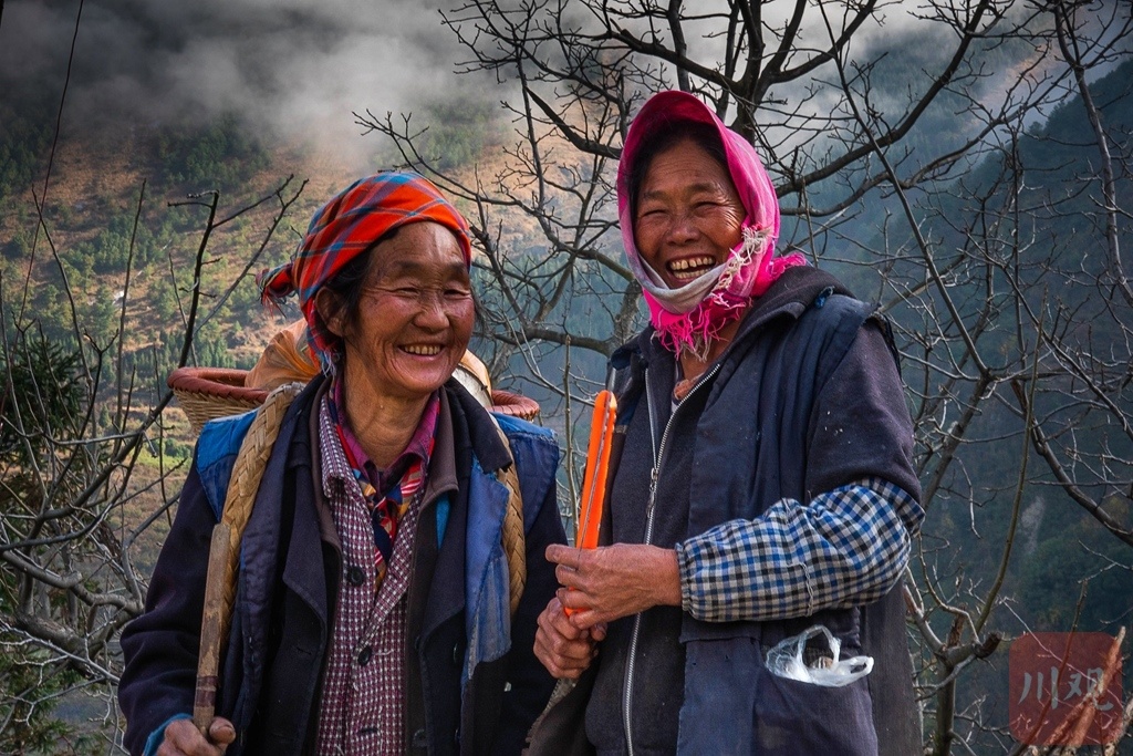 2020年12月4日,云南昆明东川汪家箐,两位阿婆从山间归来,笑靥满面。