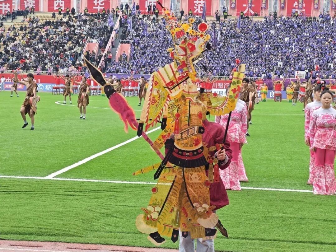 11月15日,在“川超”南充队主场的开场节目中,伴随配乐《皮影戏》,4个高达10米的巨型皮影在演员操控下缓缓穿插登场,古老的皮影艺术在现代球场上焕发出别样魅力。