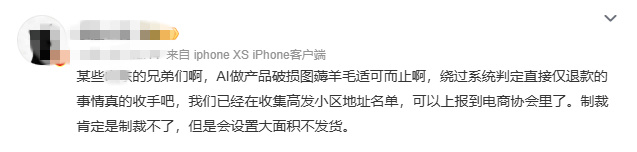 更让商家郁闷的是,即使识破了买家的AI图,有的平台仍会自动审核通过退款申请。为避免损失,部分商家已将“仅退款”功能关闭;甚至把这种恶意行为高发区域列入不发货名单。