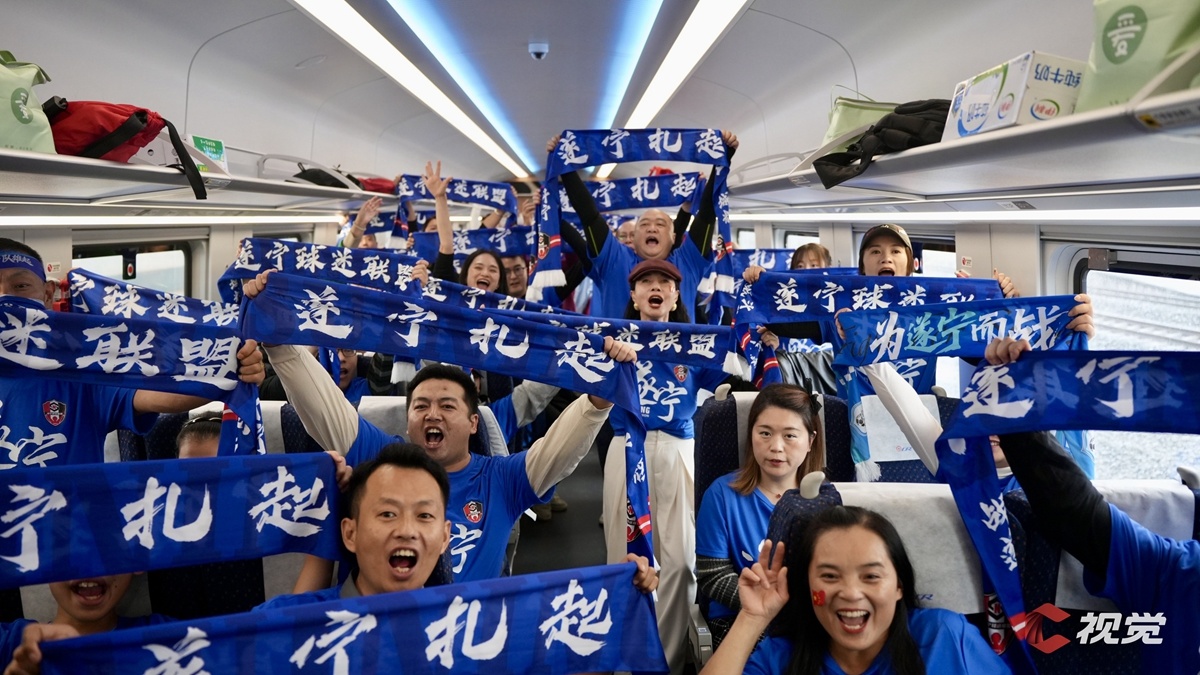 10月19日,遂宁火车站喊声阵阵,1100余名遂宁舍得干队的球迷整队集合,有序搭乘球迷专列前往达州,为球队加油。