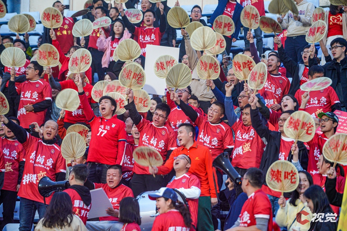 10月26日,广安板楯蛮队的球迷手持写有“辣咤”的蒲扇为球队加油助威。
